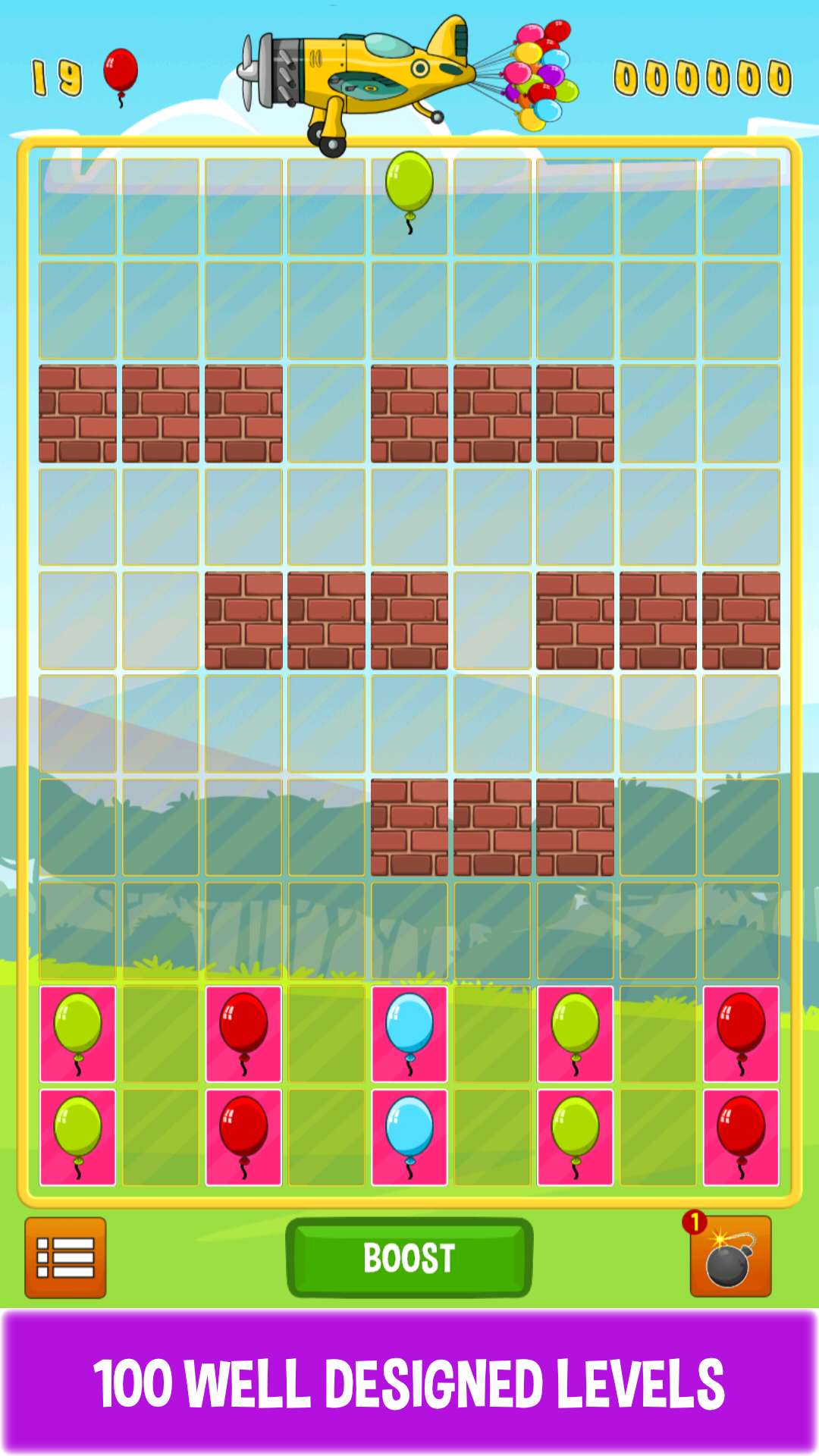 Colourful balloons are falling from an airplane. You take control of each balloon and aim to match it with two other balloons of the same colour.
